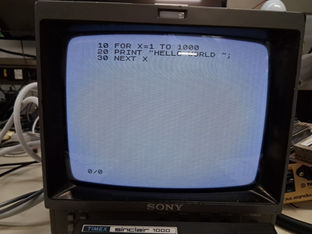 Diskless model with 48k of RAM. White CRT display, and prototype aftermarket Jay Crutti keyboard with Cherry Red key switches.